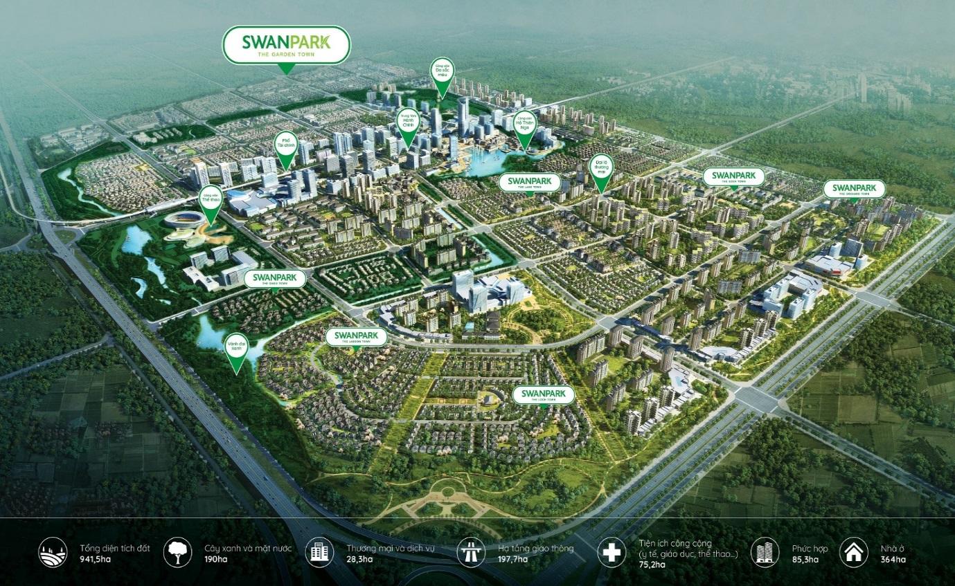 Quy hoạch chung đô thị SwanPark lấy giá trị xanh và công nghệ thông minh làm cốt lõi. Về cấu trúc của thành phố được thiết kế với 1 trọng tâm là lõi CBD và hai trục tăng trưởng về thương mại, giải trí và một vành đai xanh.